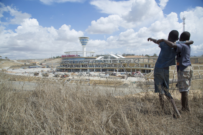 | Title | Young African boys looking at the new SGR Mombasa Terminus |