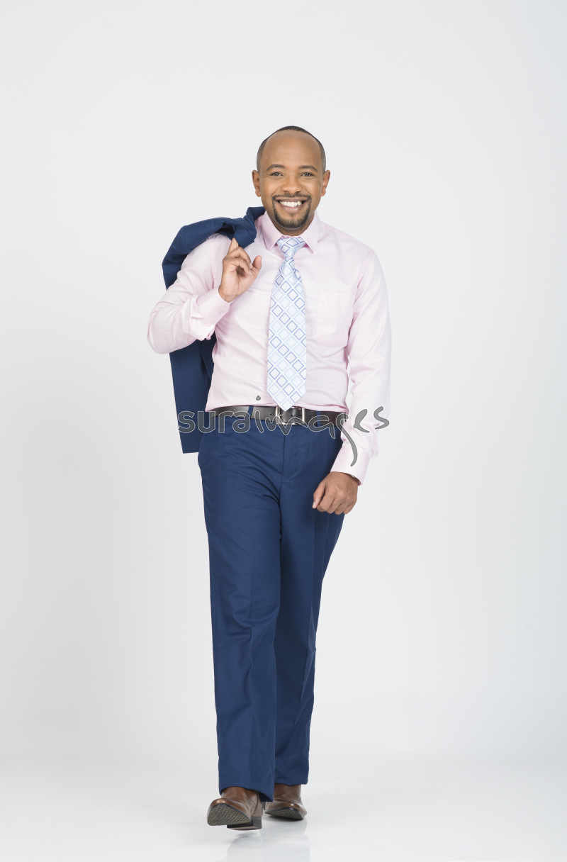 A happy young business executive walking
