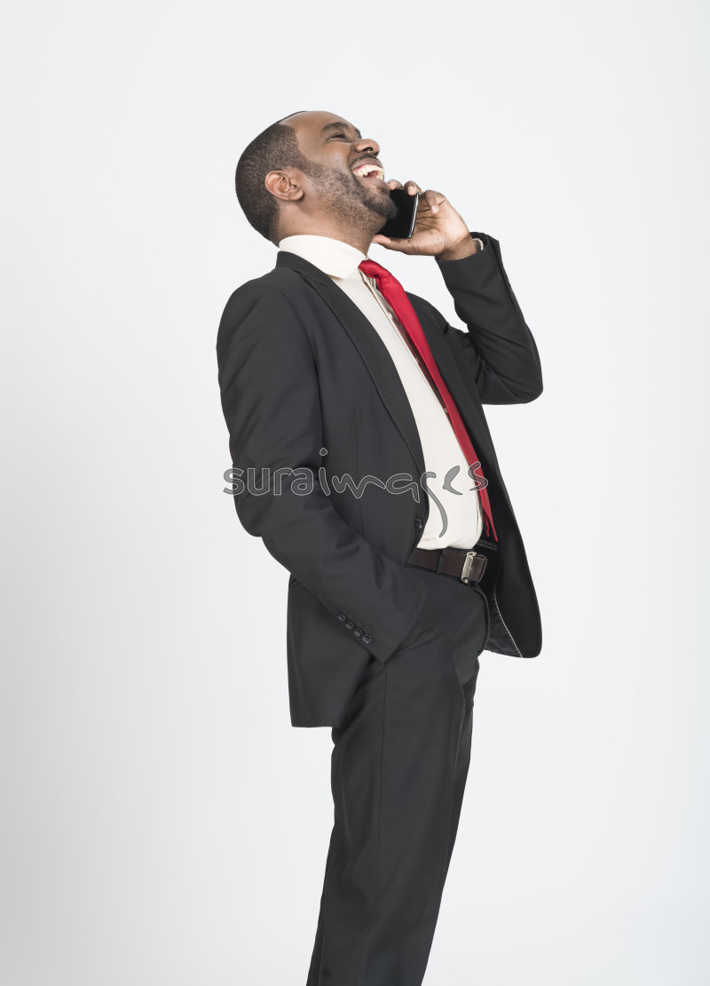 Businessman laughing out loud while on phone