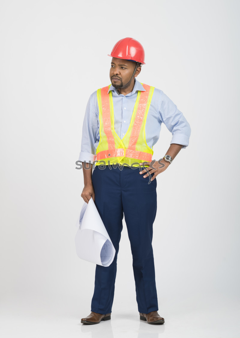 | Title | Young male engineer thinking as he inspect the construction in progress |