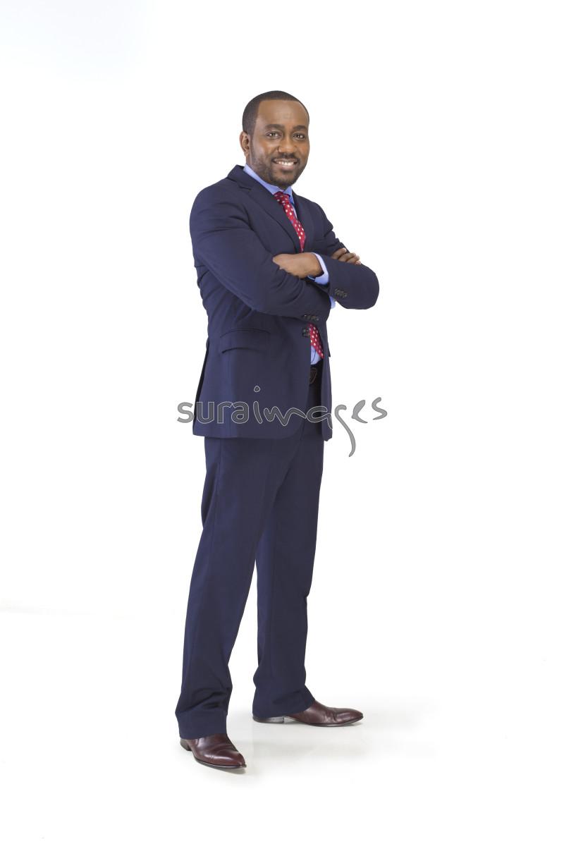 | Title | Young business executive standing on isolated white background |