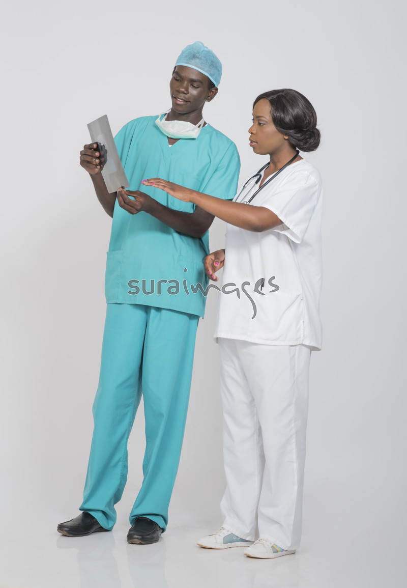 | Title | Male surgeon and female nurse accessing patient x-ray |