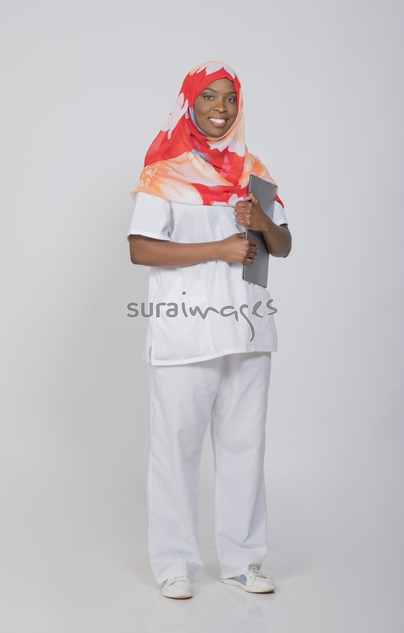 | Title | A female nurse standing as she holds patient file |