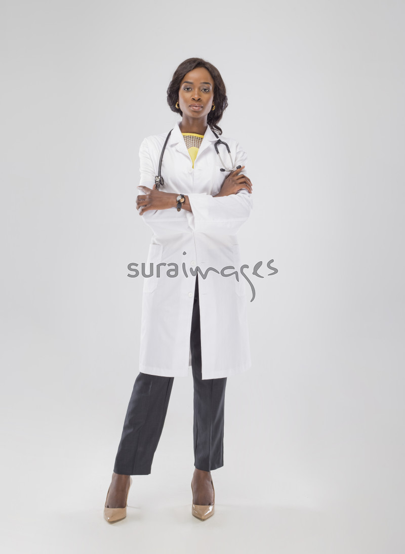 | Title | A female general doctor striking a pose on isolated white background |
