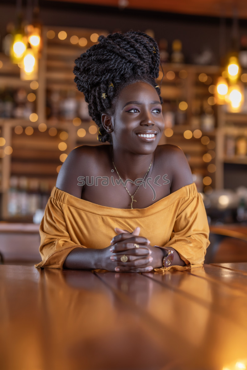 | Title | A beautiful young African lady chilling in a restaurant |