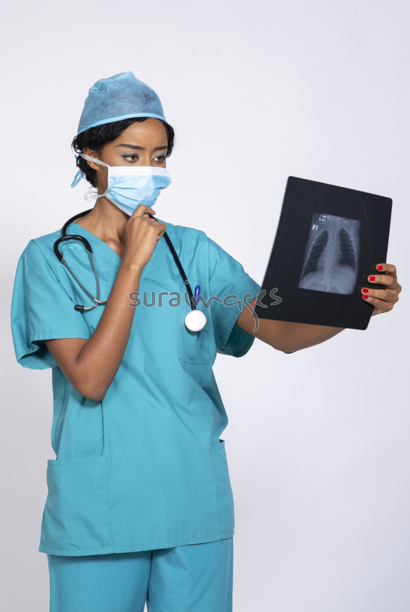 Title Female doctor examines a patient X-ray