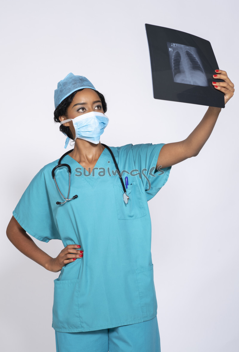 Title Female doctor looking at a patient x-ray
