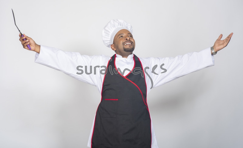 Title Happy male chef rejoicing