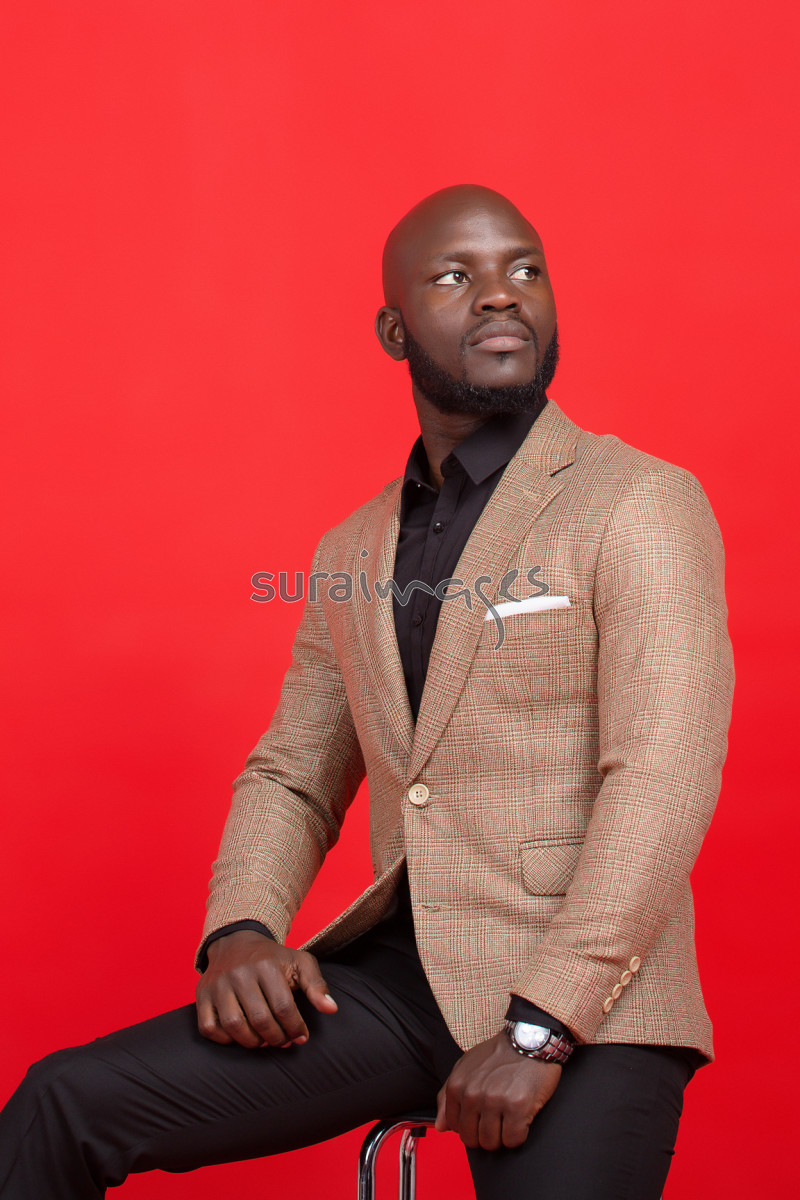 | Title | Young male business executive on red isolated background |