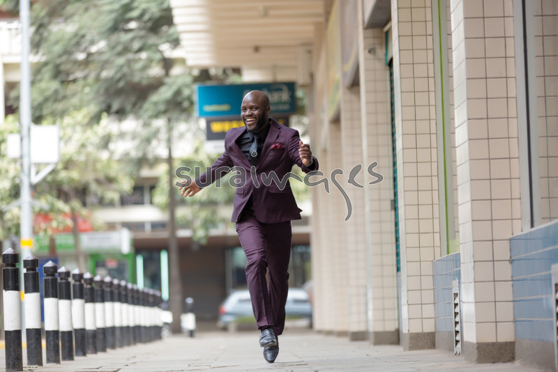 Happy business executive walking around town