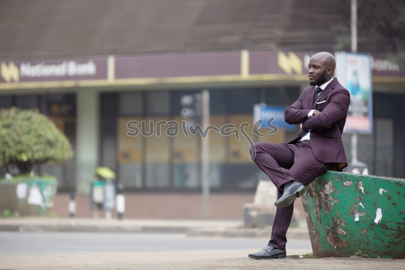 Happy business executive walking around town
