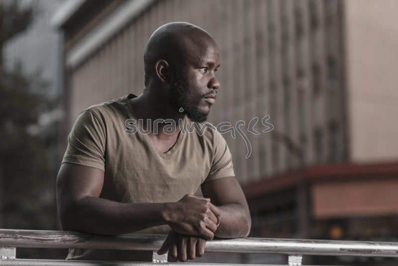Title Young male relaxing in the city centre