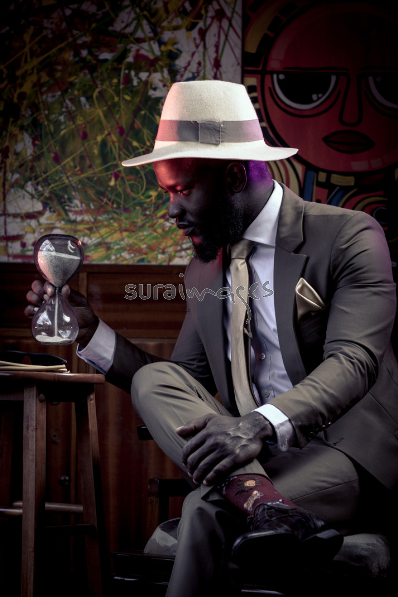 Title Businessman looking at hour glass
