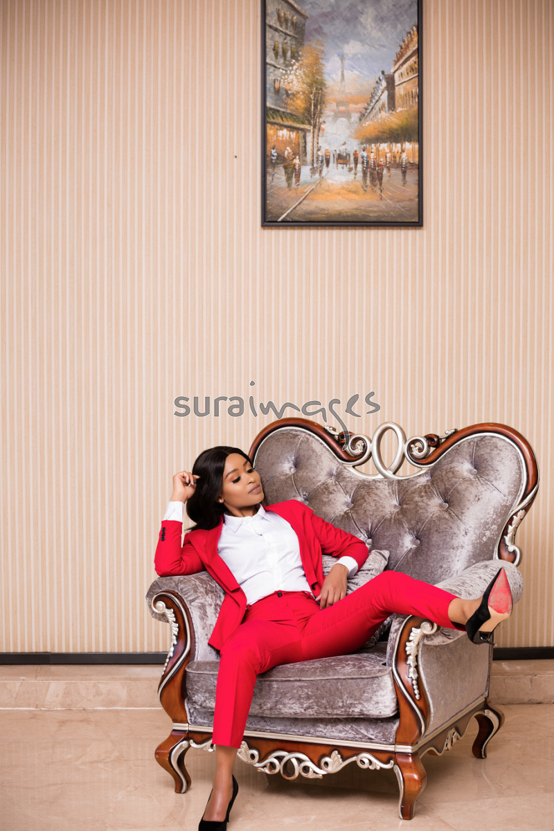 Title Young female business executive in her office