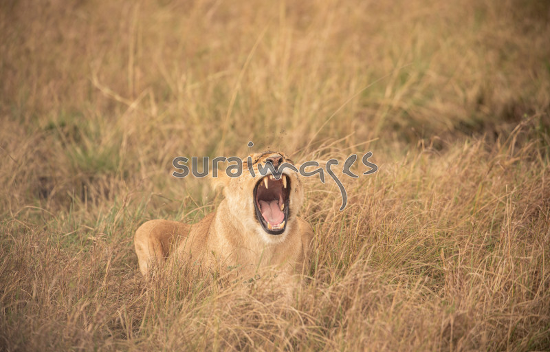 Title Lion yawning in Maasai Mara