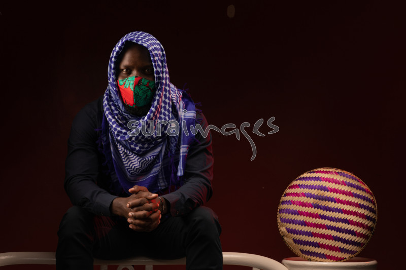 Young male covering his head with a headscarf