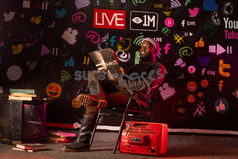 Young lad in studio reading