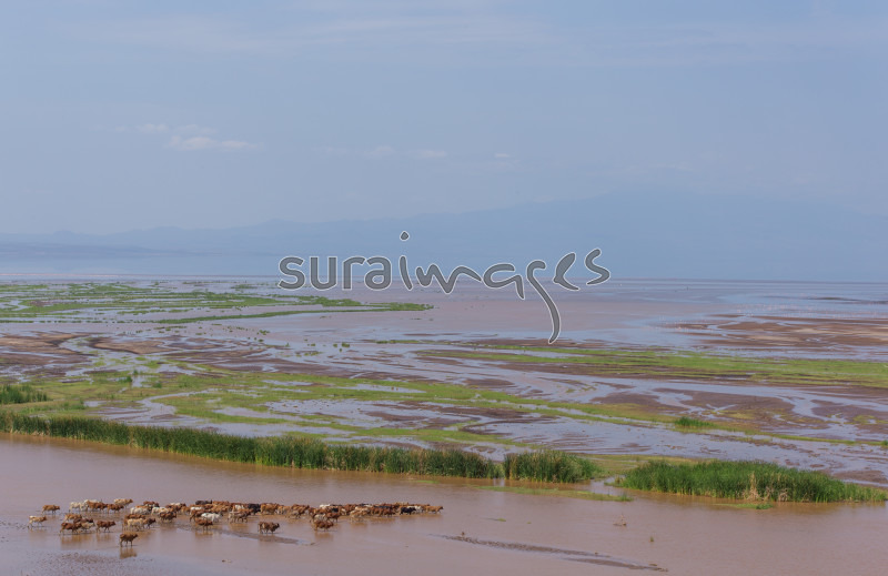 | Title | A herd of cattle crossing a shallow end of Lake Natron |