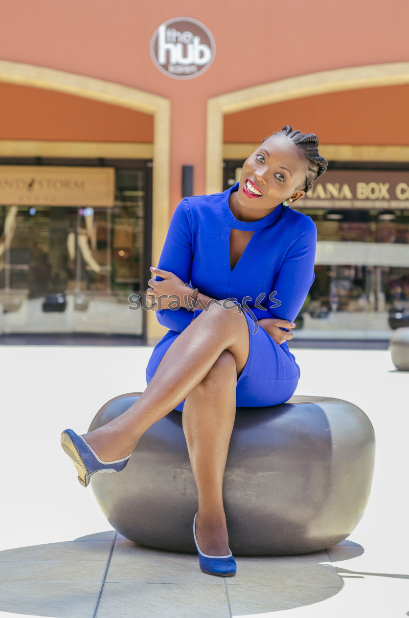 Kenyan young female in a blue dress seated