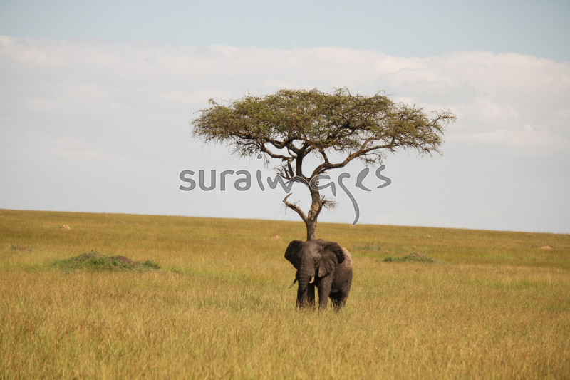 | Title | A young elephant transversing the Mara National Park |
