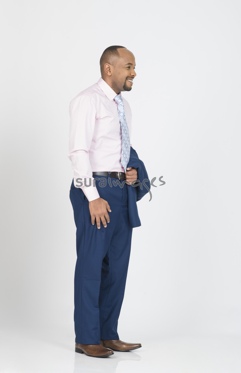 Title Young African business executive holding his coat