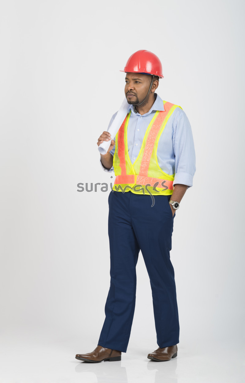 | Title | Young male engineer thinking as he inspect the construction in progress |