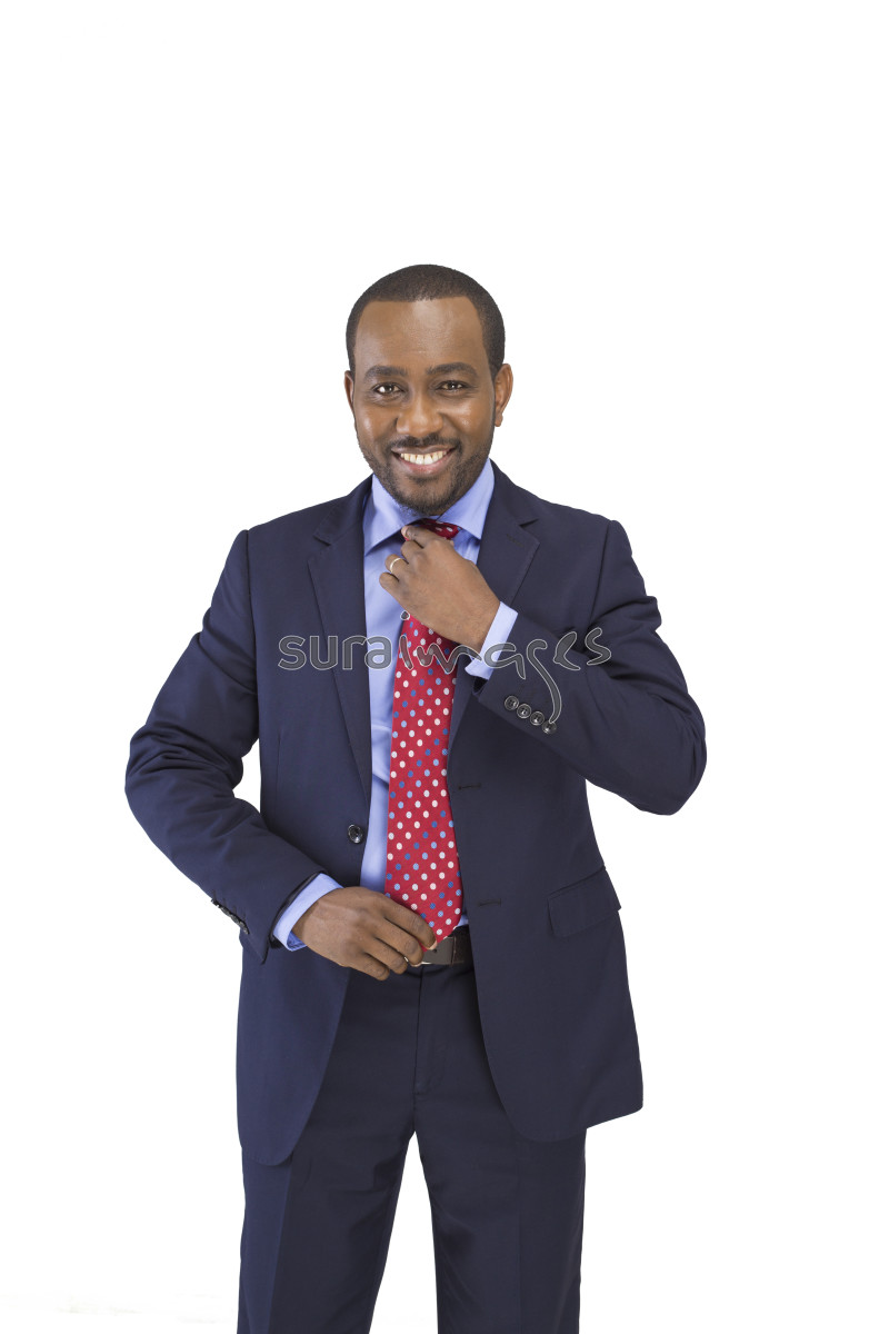 A happy male business executive tightening his tie