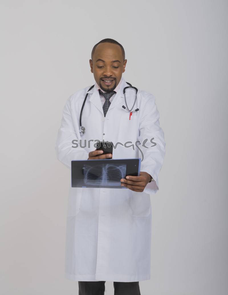 Title Male doctor snapping a photo of an X-ray