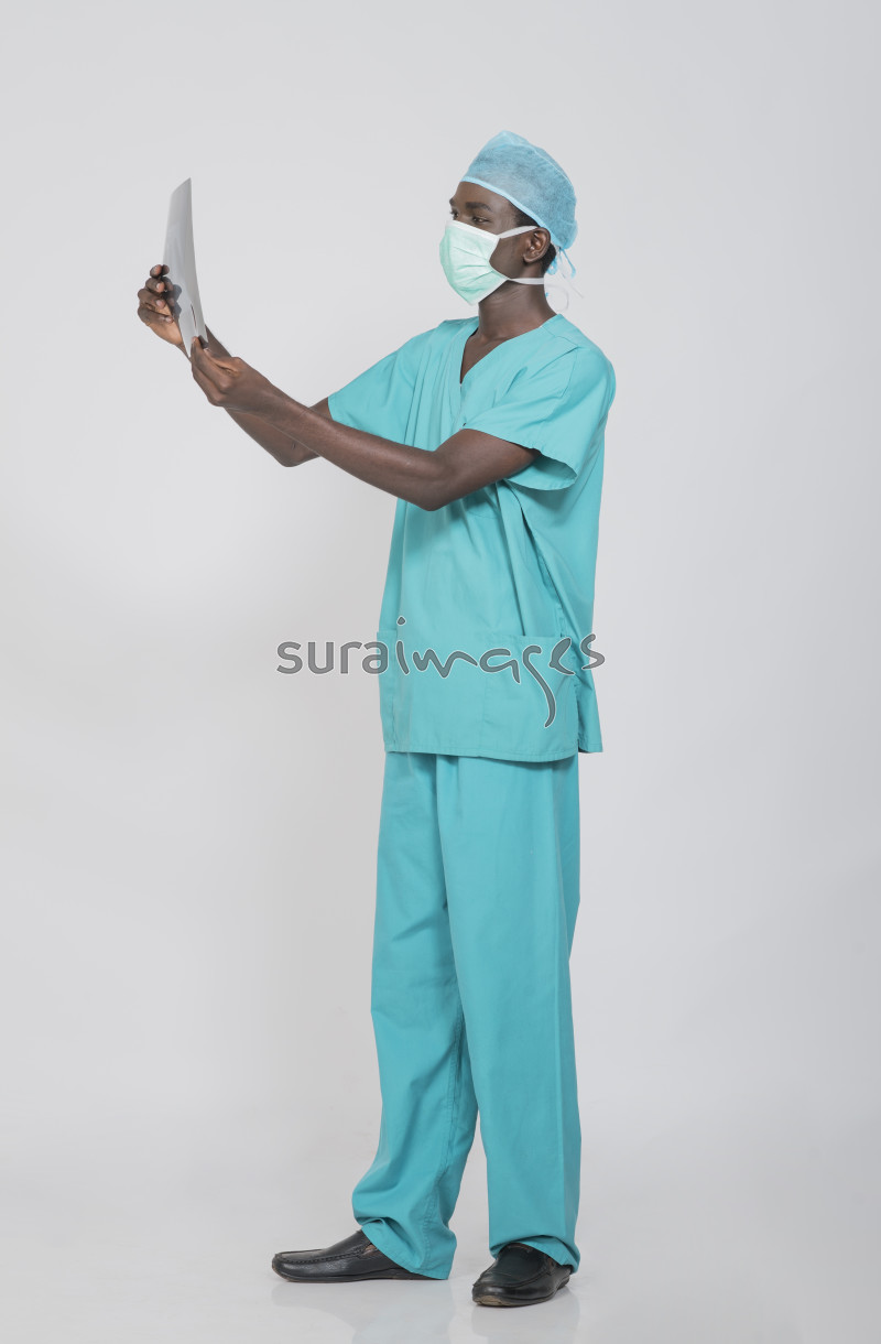 | Title | Surgeon examining an X-ray ready for operation |