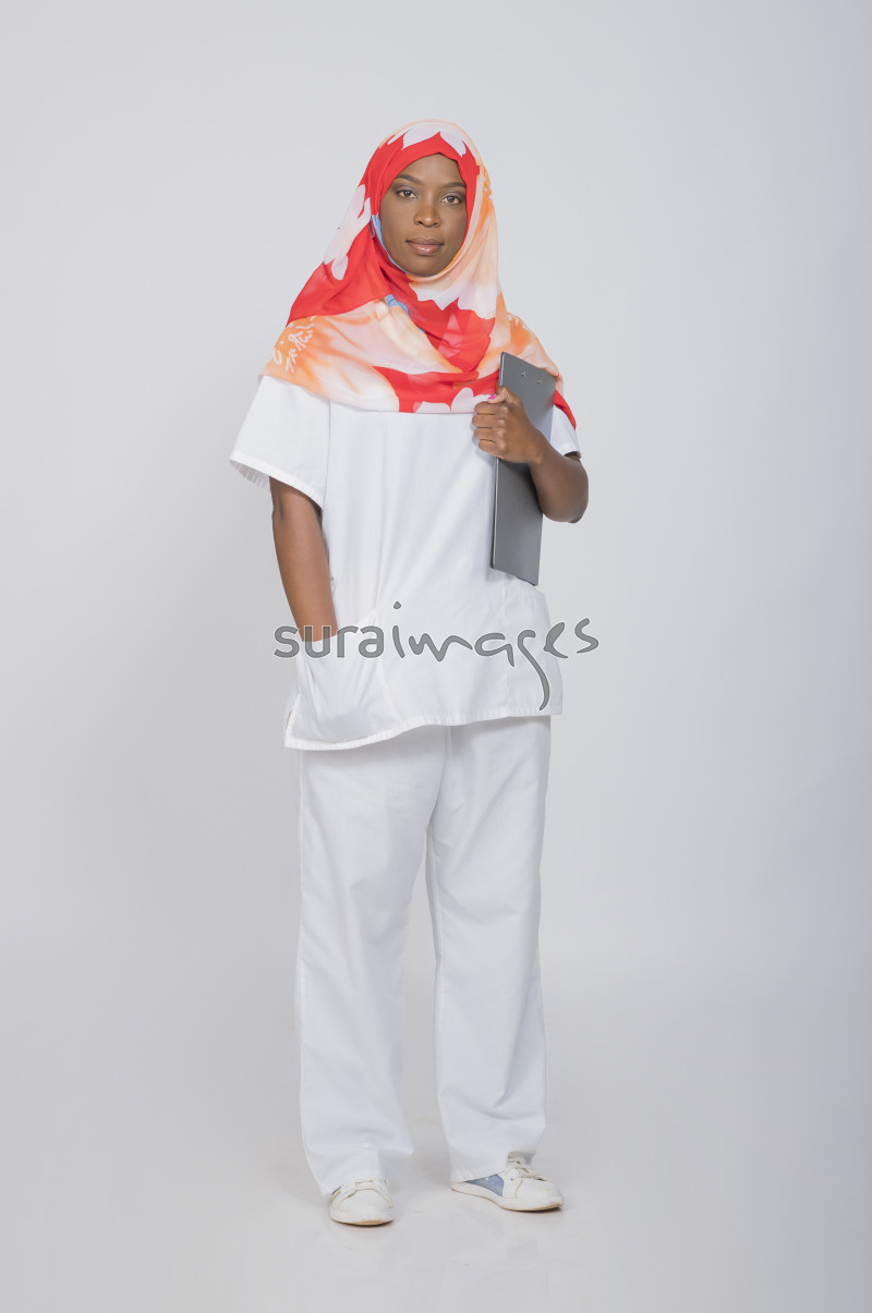 | Title | A female nurse standing as she holds patient file |