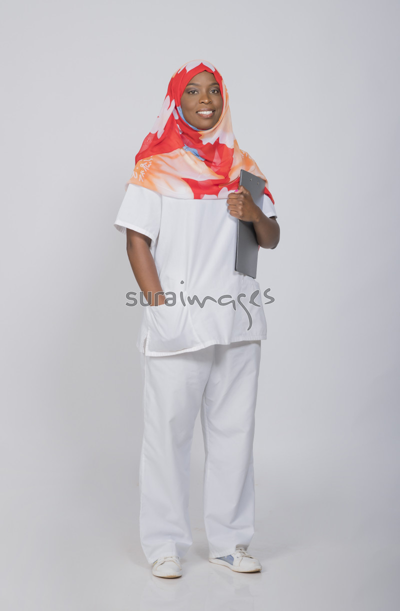 | Title | A female nurse standing as she holds patient file |