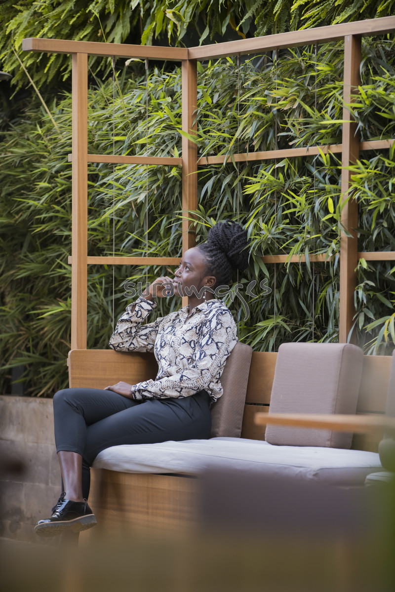 Title Young female executive relaxing