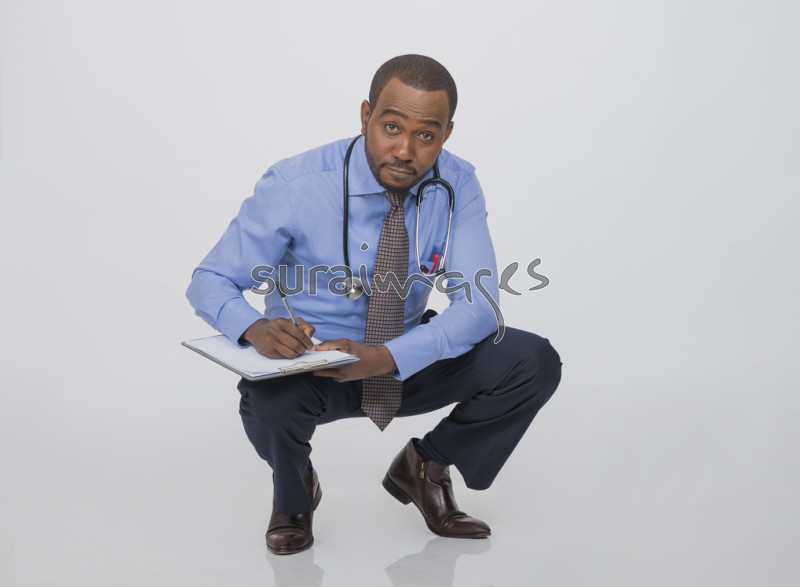 | Title | Male doctor writing a discharge summary of his patient |