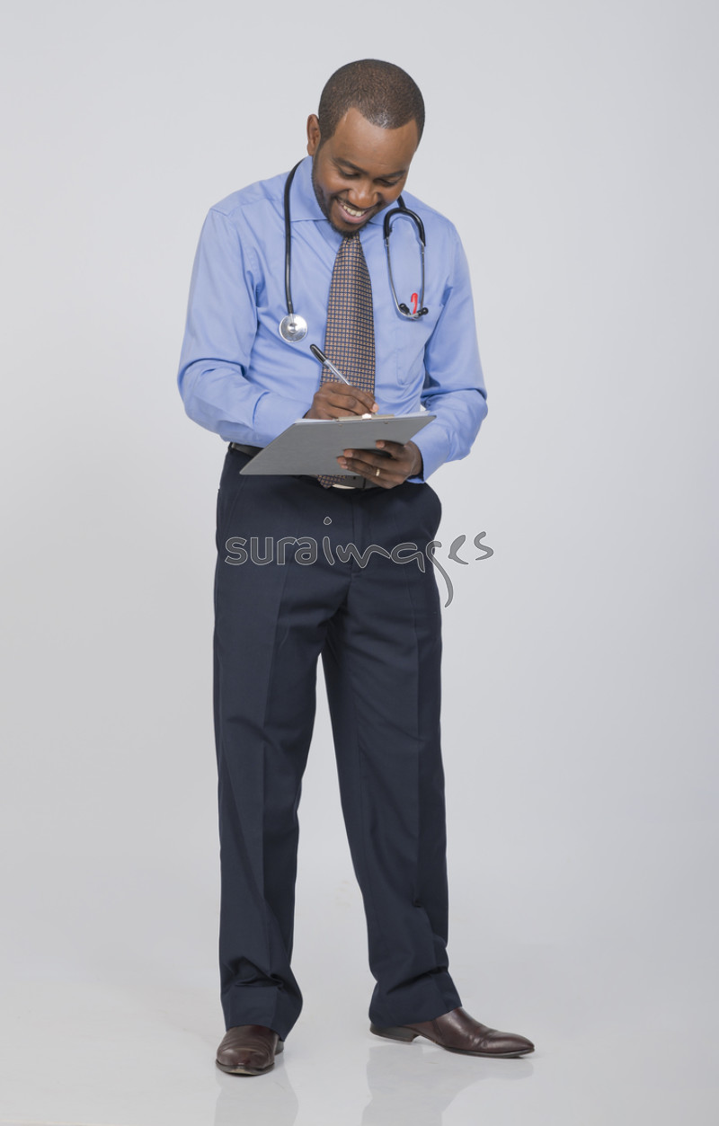 | Title | Male doctor writing a discharge summary of his patient |
