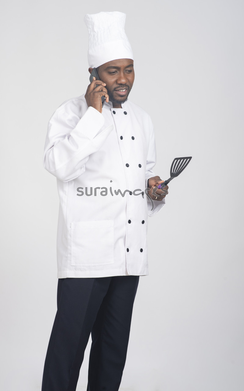 Male chef talking on phone