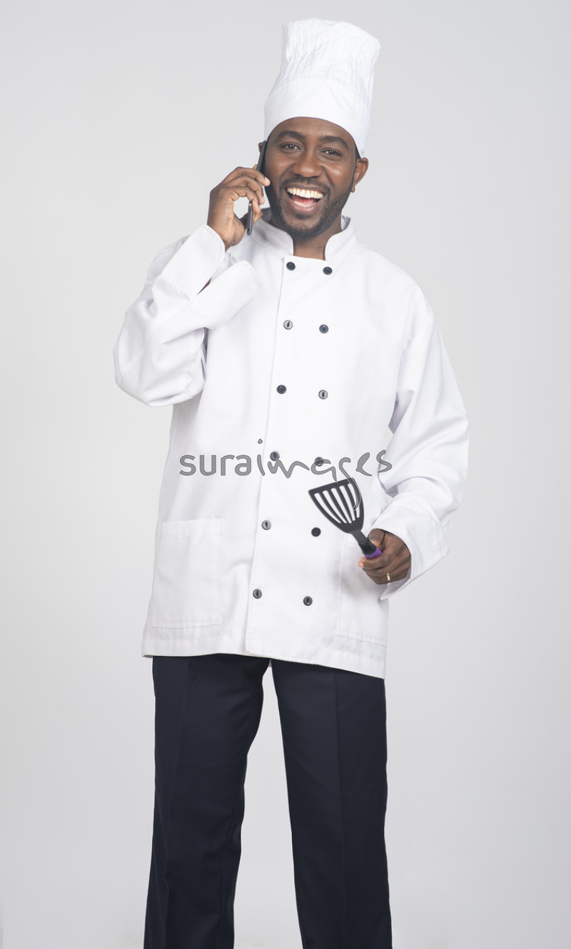 Male chef talking on phone