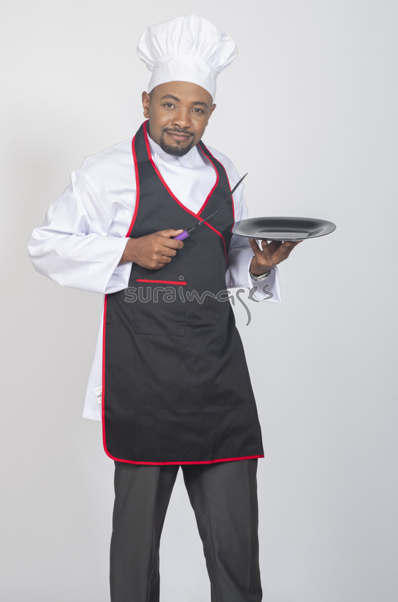 Joyful male chef holding a plate