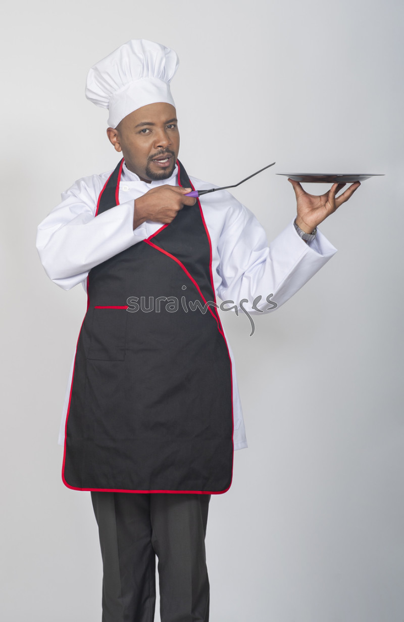 Title Joyful male chef holding a plate