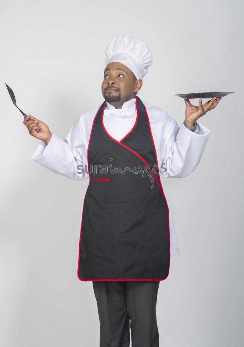 Title Joyful male chef holding a plate