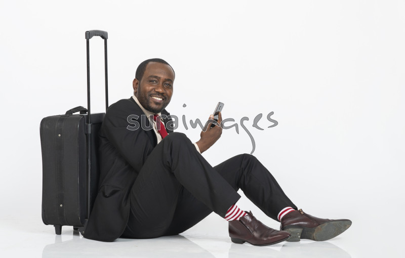 Male business executive with his travel suitcase