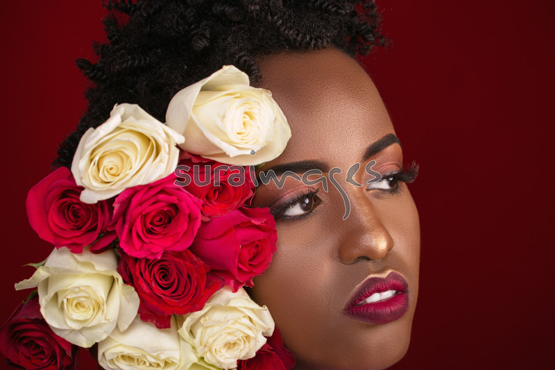 | Title | A close up of a young female face with rose flowers decor |