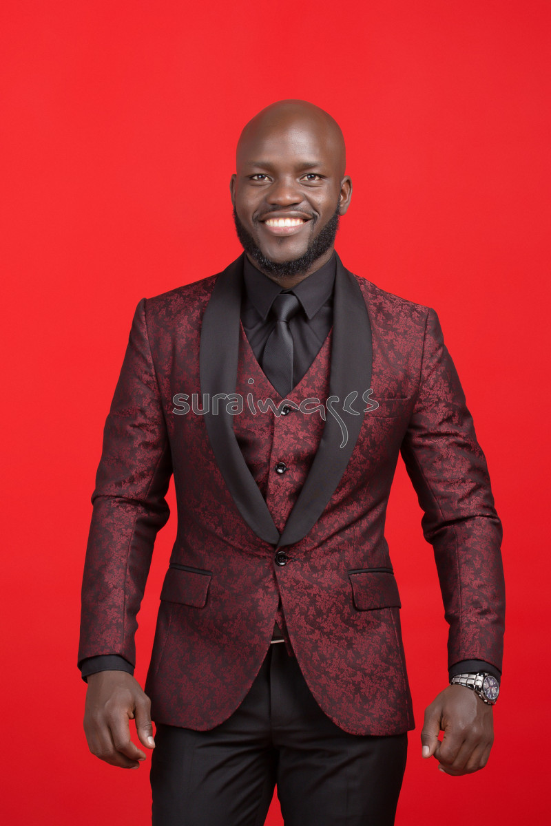 | Title | Young male business executive on red isolated background |