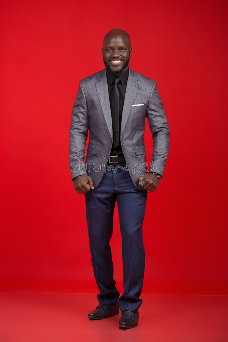 | Title | Young male business executive on red isolated background |