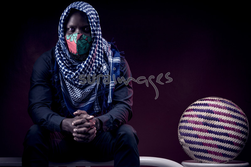 Young male covering his head with a headscarf