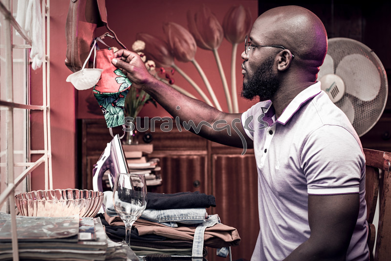 young man in his shop making masks