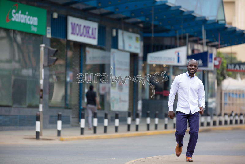 Young lad walking around town