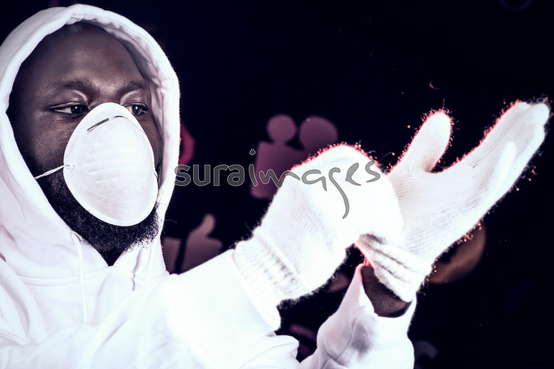 Young male in white mask and gloves