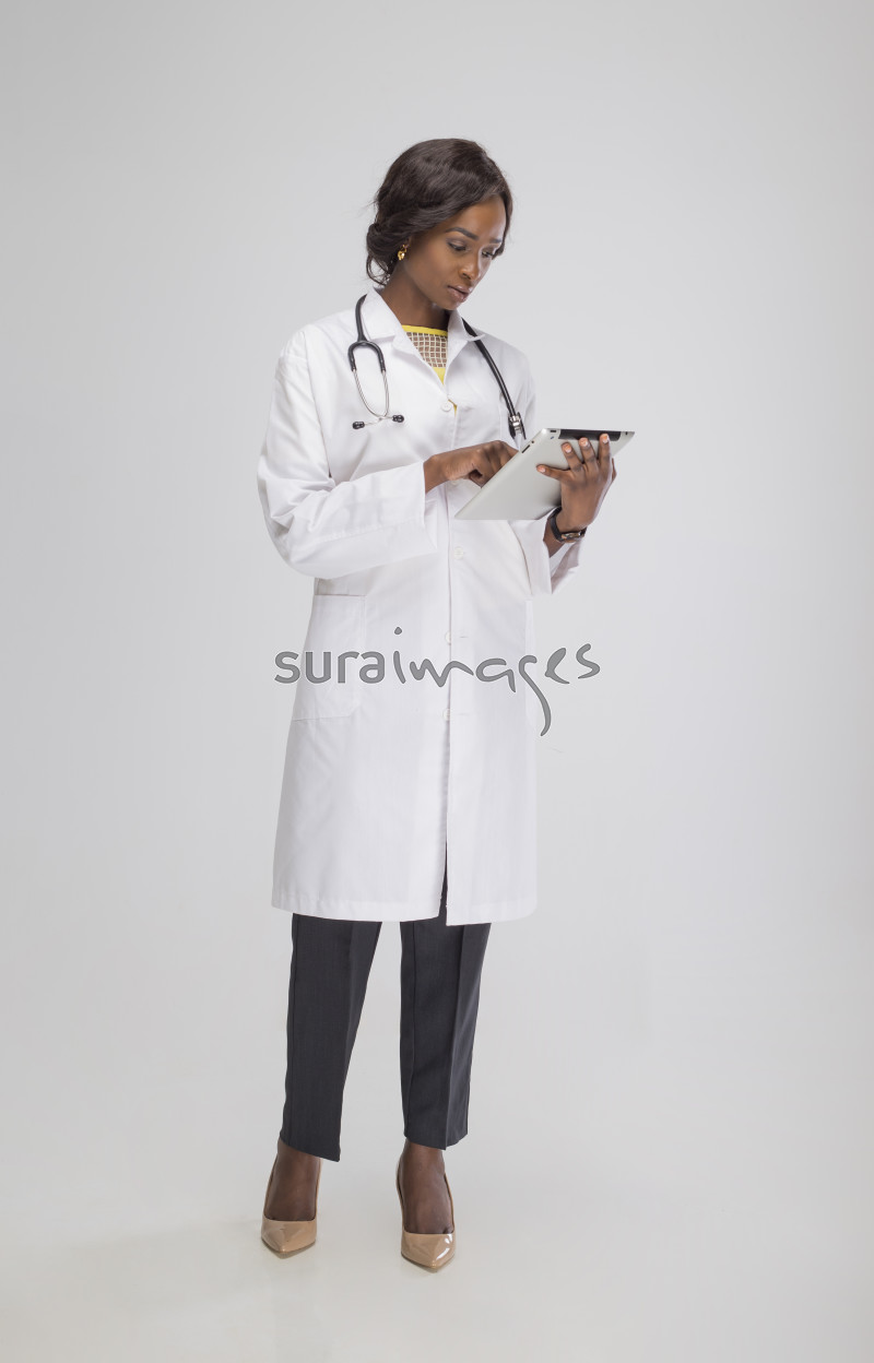 | Title | Female general doctor checking patient's records from her tablet |