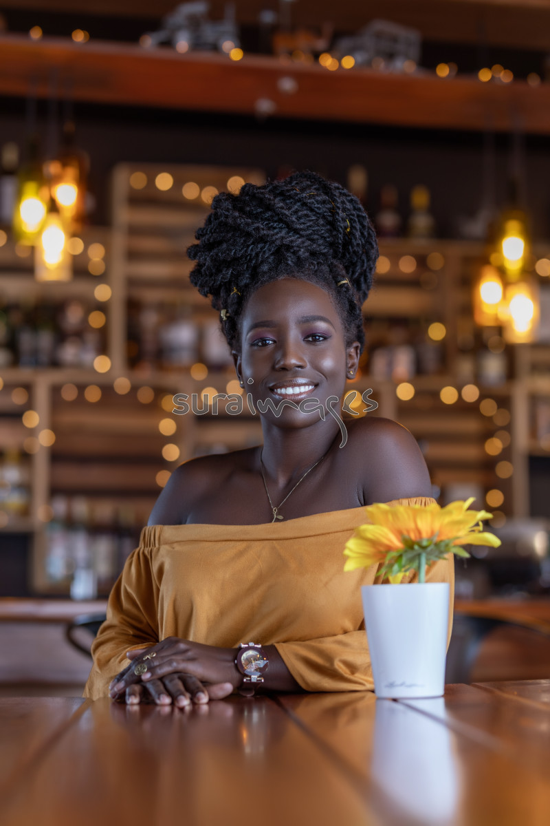 | Title | A beautiful young African lady chilling in a restaurant |