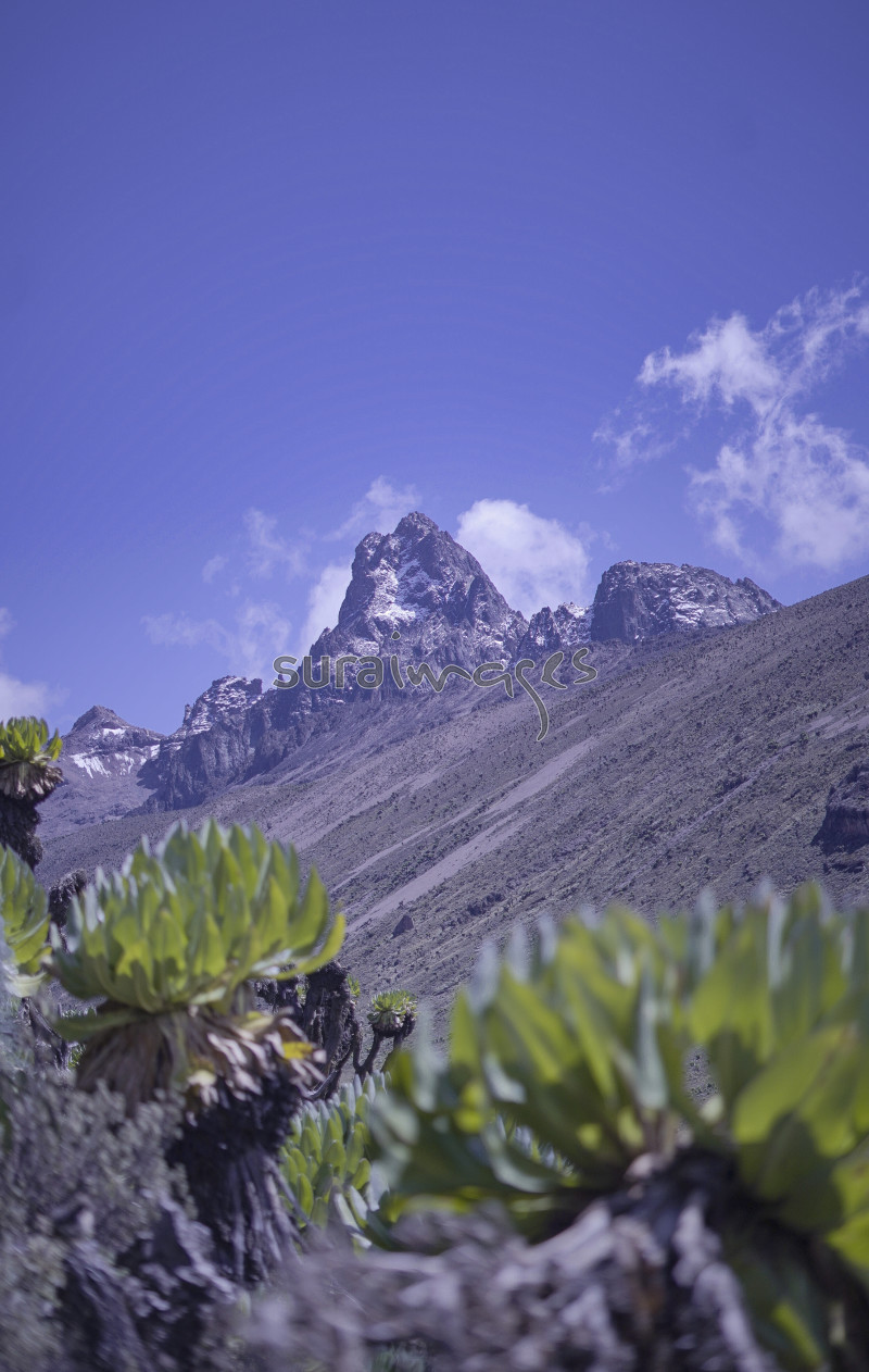 Title A view of Mount Kenya from the bottom